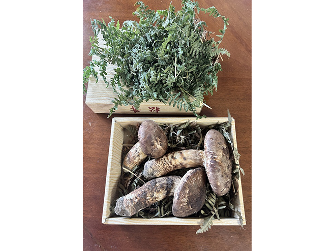 写真にあるように、松茸の単価は、形と重さで決まる決まり。一番いい形は、ま「丸」というもので、100gが15,000円とやっぱりお高い!なので形にこだわらず、コスパ優先の松茸を250gほど。当日のお客は我々だけで、入荷も1kg程度。職員の方曰く、年々収穫時期が遅れ、量も激減しているとのこと。貴重な秋の味覚がますます希少になっていくのは寂しい限り。