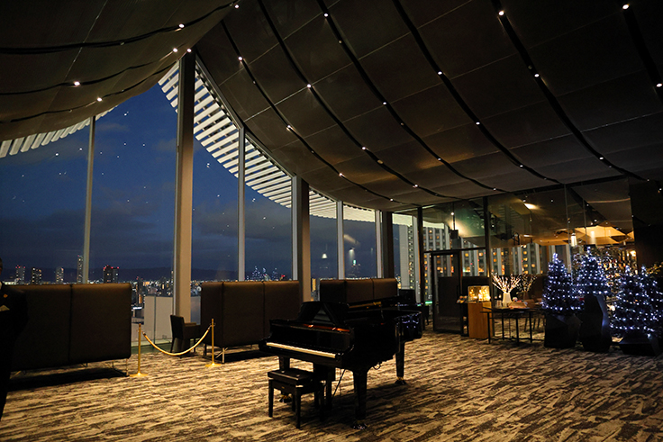 宴会場は最上階にあり、難波の夜景を眺めながら特別なひとときを過ごせます。