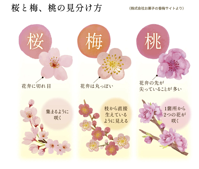 あっという間に1月が過ぎ。春が待ち遠しい今日この頃、これからの季節に咲き始める日本を代表する花、梅にはじまり、桃、櫻。しかし毎年梅と桃の区別がはっきりしなかったのですがこれを機会にしっかり理解できたらと。梅は枝に花が点在して咲く、桃は枝に花が密集して咲く、この方法で簡単に見分けがつけば良いが?