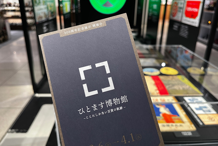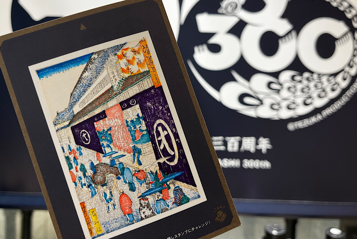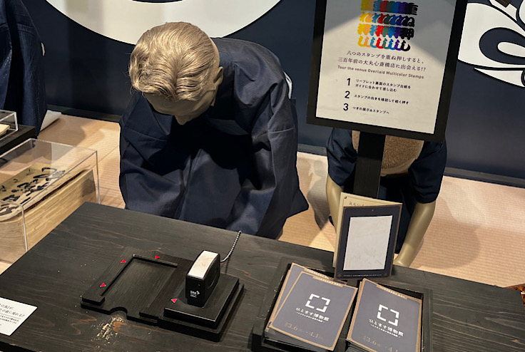 開業300周年記念展示として、「ひとます博物館- ここにしかない百貨の軌跡 -」という心斎橋店300年の歴史を紹介するコーナーが各階に設けられていて、スタンプ台が設置されていました。「重ね捺し」というのがポイントで、スタンプを重ね捺していくと絵柄が完成していきます。